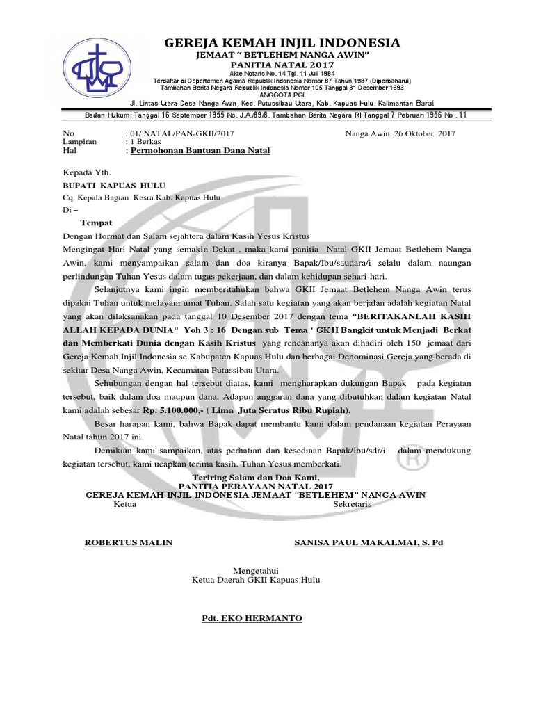 Berikut merupakan contoh proposal natal, anda bisa melihat apakah proposal ini nantinya bisa membantu anda dalam membuat sebuah proposal. Surat ini juga digunakan untuk mempermudah kita menyampaikan maksud (yaitu memohon bantuan dana) kepada orang/badan yang dimaksud jika kita sulit bertemu dengan. Contoh surat permohonan dana untuk pembangunan masjid. Contoh surat permohonan bantuan dana kegiatan. Surat permohonan dana merupakan salah satu contoh surat resmi yang berfungsi sebagai surat untuk meminta bantuan dana secara tertulis dari suatu instansi ataupun organisasi kepada orang banyak/ umum baik di dalam ruang lingkup tertentu atau masyarakat luas. Surat permohonan sendiri dapat bersifat resmi atau pun tidak resmi. Di atas adalah proposal yang di jilid dan ini adalah surat permohonan yang akan di ajukan ke perusahaan Sebagai seseorang yang hidup bersama di dalam sebuah masyarakat tentu akan dihadapkan pada berbagai masalah yang melibatkan individu dengan orang lain. Surat permohonan sendiri terdiri atas beberapa kategori, yaitu surat permohonan rekomendasi, surat permohonan izin, dan masih banyak jenis surat permohonan lainnya. Contoh surat permohonan berbagai keperluan yang benar. Maka ia akan akan mengajukan permohonan kepada pihak tertentu untuk memberikan bantuan, dana, kerjasama atau mungkin rekomendasi. Mulai dari bantuan dana, libur kerja, beasiswa, kerjasama, pembangunan, maaf perlu anda ketahui jika surat permohonan merupakan surat yang menyatakan permohonan atau permintaan antara satu pihak dengan pihak yang lainnya. Perayaan natal tidak harus dilakukan pada 25 desember karena natal yang sesungguhnya ada di hati kita.